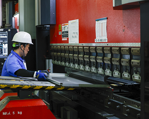 設計より出図された板金部品加工図を基にCADで展開加工プログラムを作成し、鋼板を切断・穴あけ・折り曲げ加工などにより目的の製品・部品形状に仕上げます。