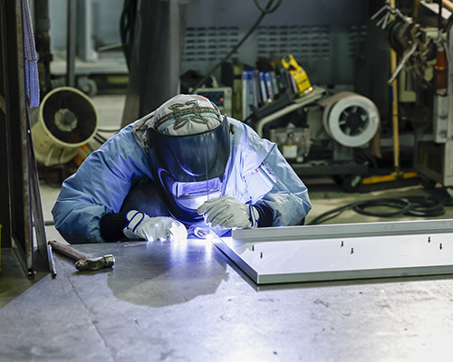 板金加工で出来上がった部品を、組立図を基に溶接作業で組合せ立体的な製品を造り上げます。